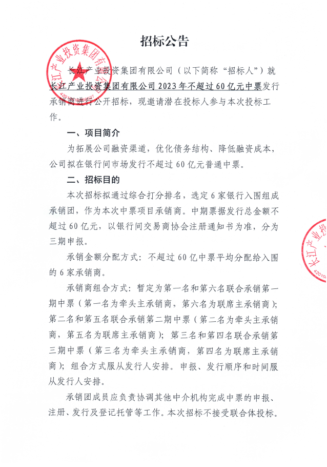 九游会老哥吧俱乐部投资集团有限公司 2023年不超过60亿元中票承销商招标公告