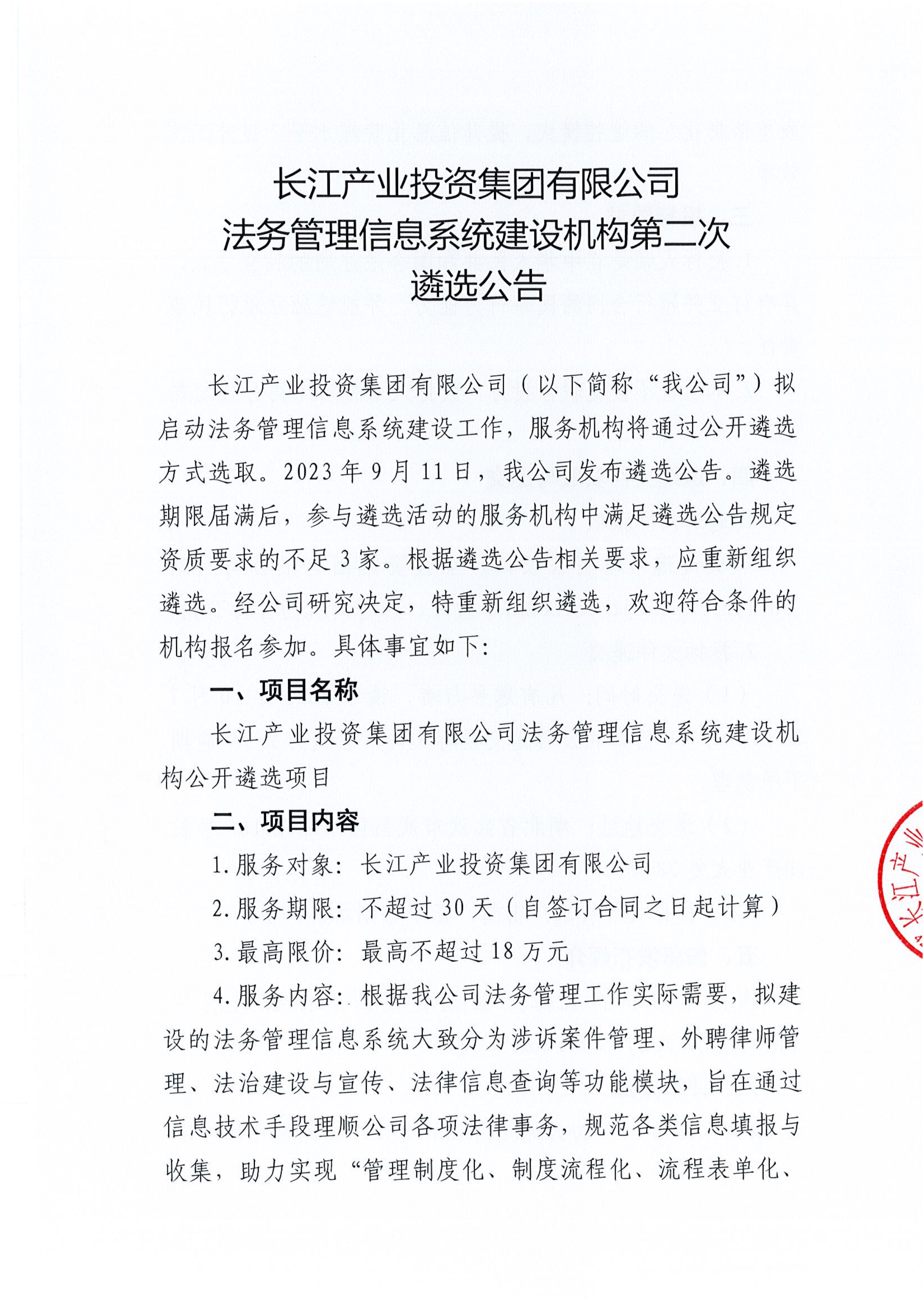 九游会老哥吧俱乐部投资集团有限公司法务管理信息系统建设机构第二次遴选公告